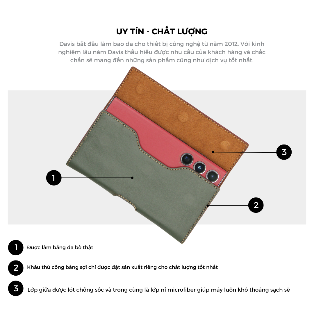 Bạn đang dùng điện thoại to? Bạn là dân công trình? Bạn hay di chuyển? Bạn hay mặc quần bó? Bạn có nhiều hơn 1 điện thoại? Bạn ghét để điện thoại trong túi quần? Bạn cần sự sang trọng…Nếu bạn là những người như trên thì đúng là bạn đang cần một cái bao da đeo thắt lưng của Davis.