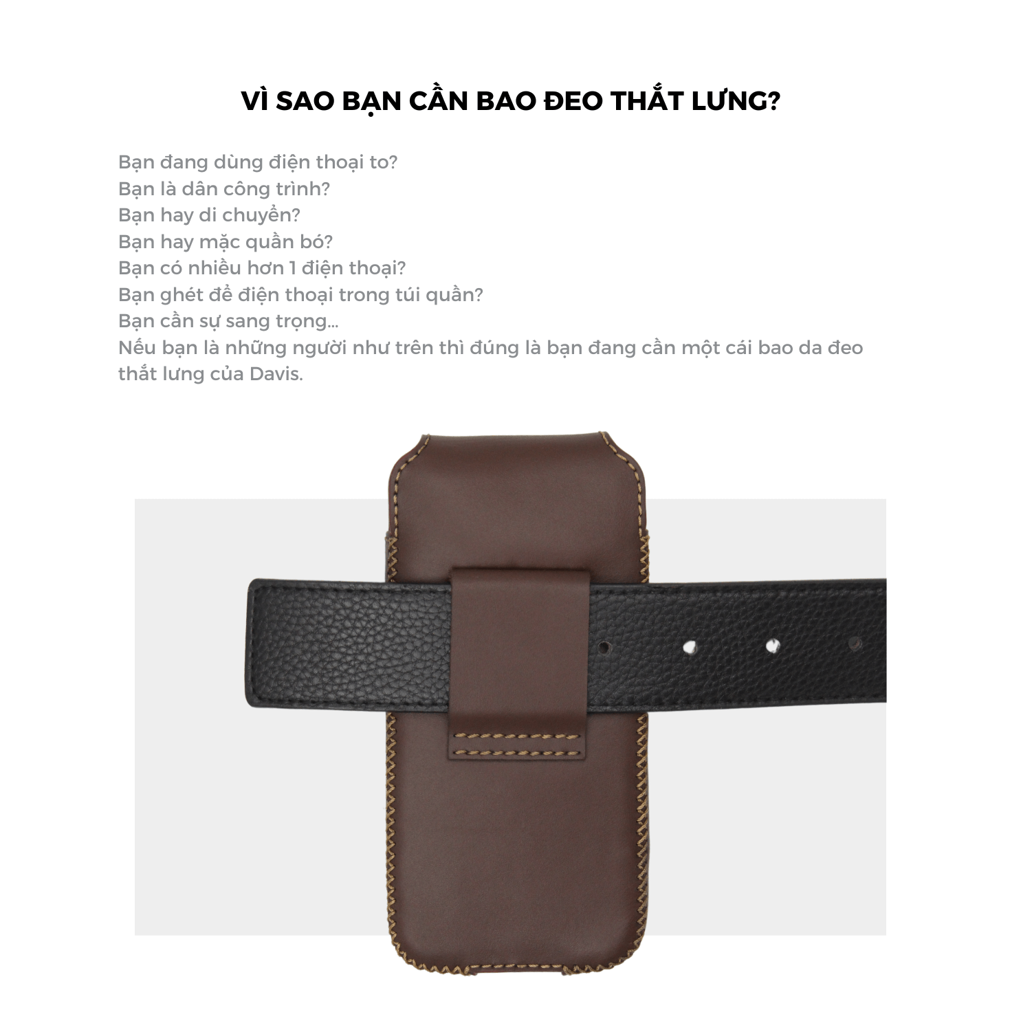 • Với kinh nghiệm sản xuất đồ da từ năm 2012, Davis sẽ mang tới cho bạn sản phẩm và dịch vụ tốt nhất.