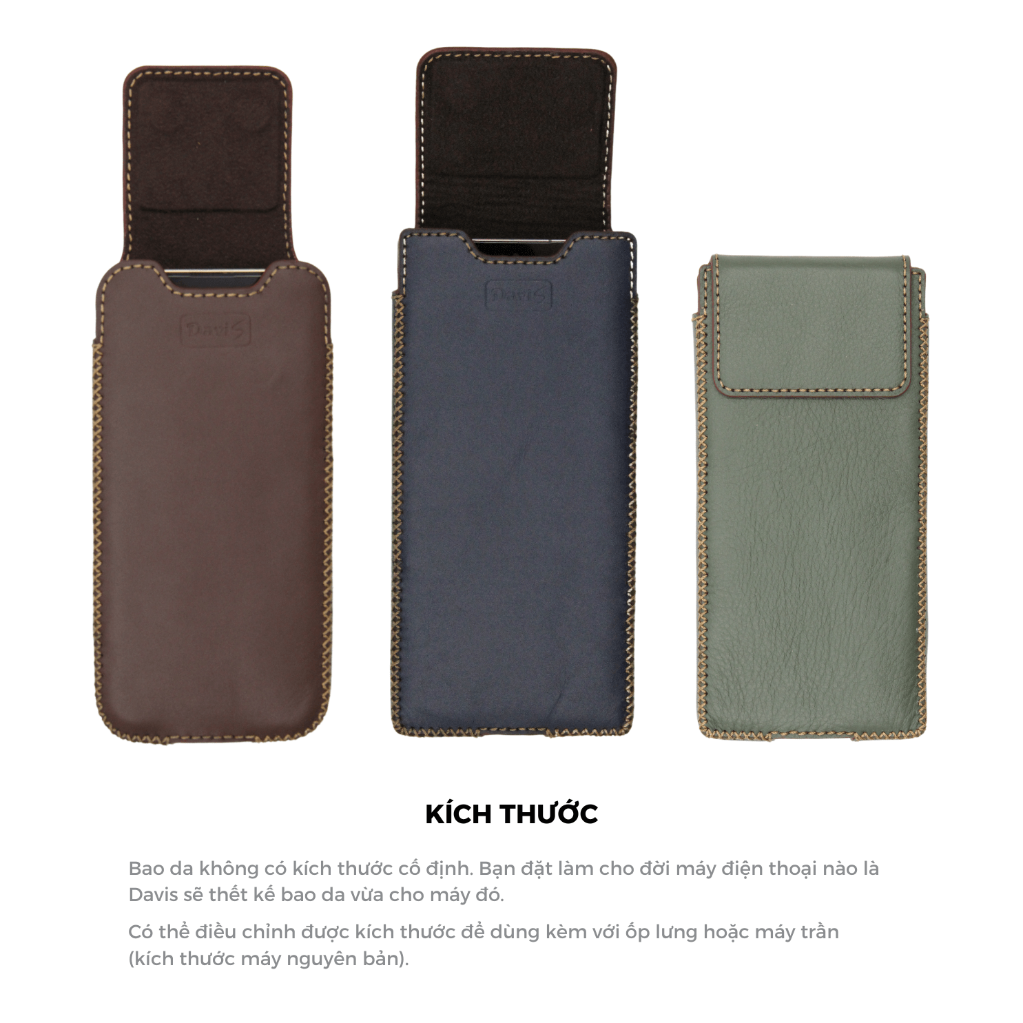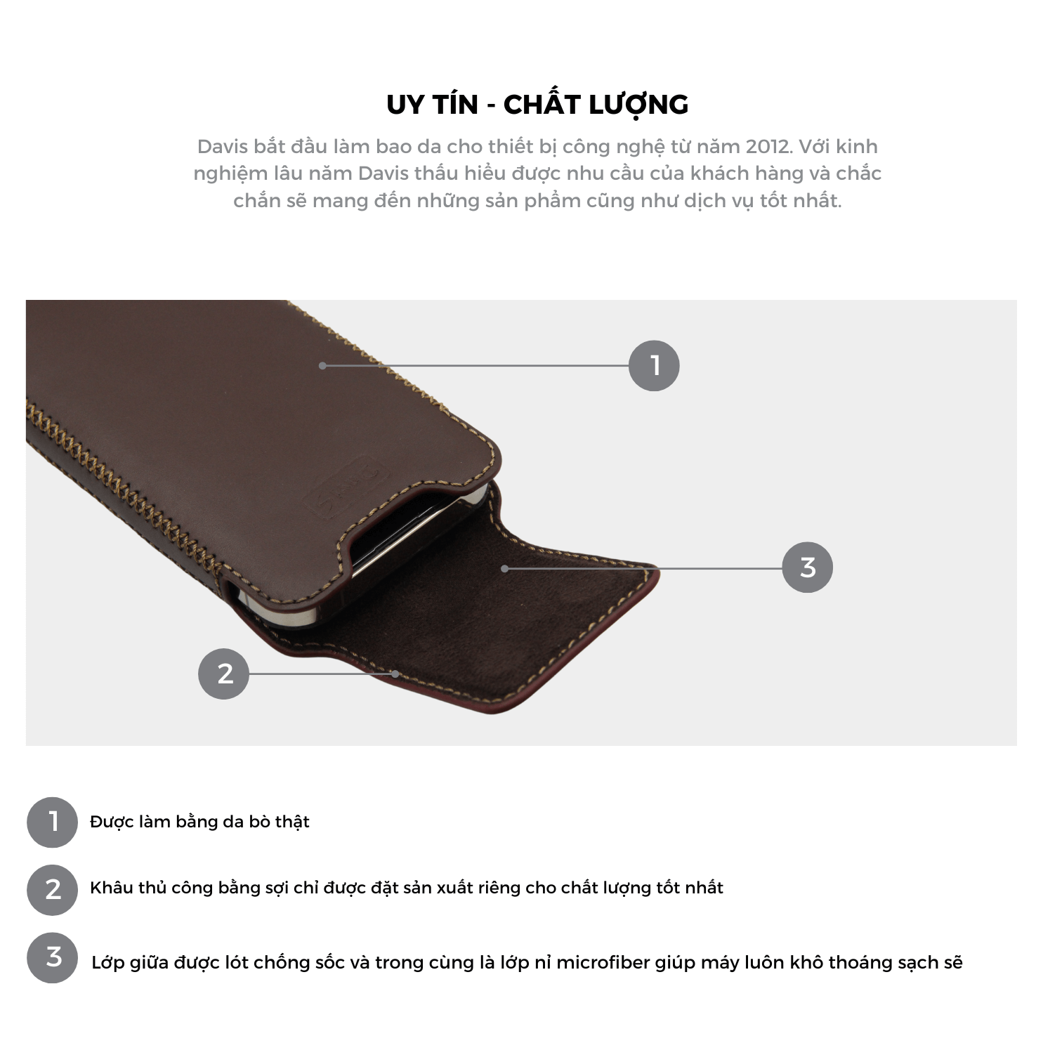 • Với kinh nghiệm sản xuất đồ da từ năm 2012, Davis sẽ mang tới cho bạn sản phẩm và dịch vụ tốt nhất.