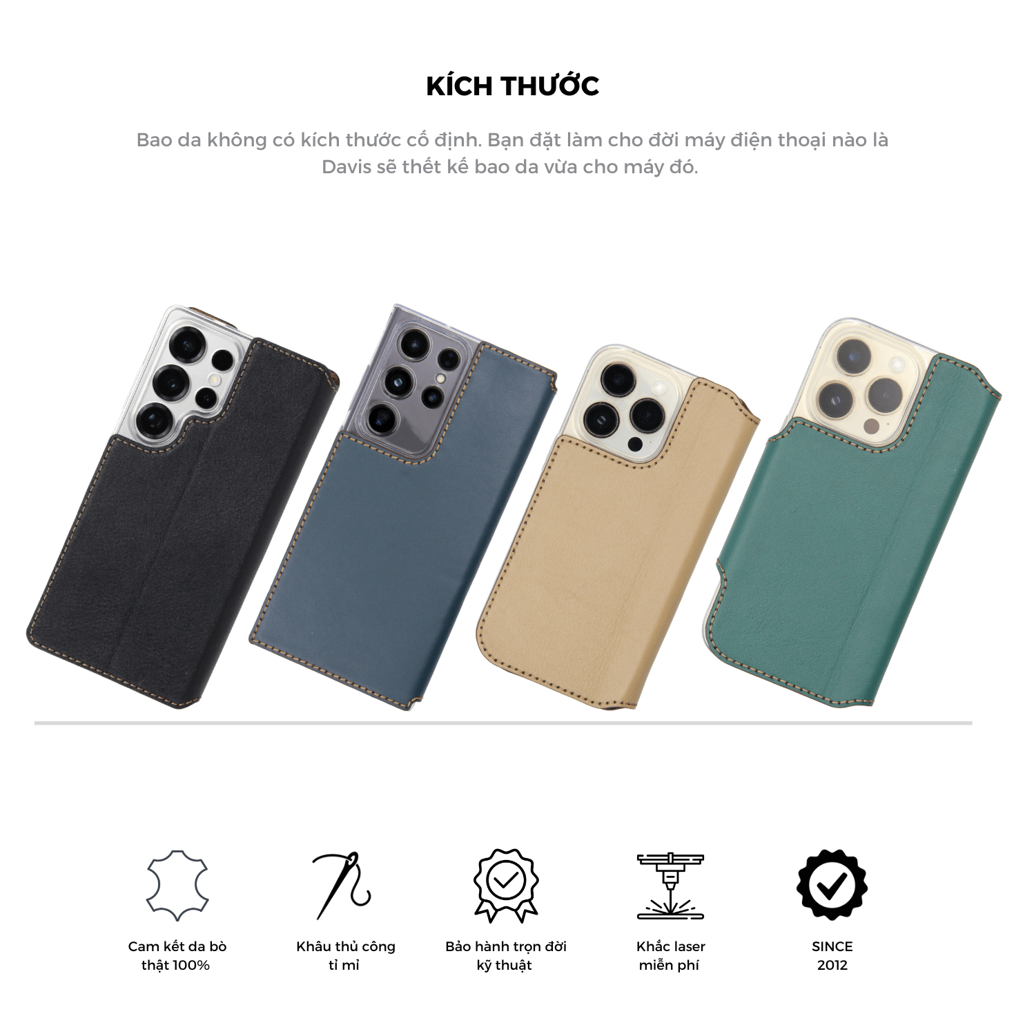 • Điểm đặc biệt khi mua bao da của Davis là bạn có thể cá nhân hoá bao da. Bạn có thể khắc tên, chữ, số hay hình ảnh nào mà mình thích nhằm tạo sự khác biệt mà chỉ bạn sở hữu hoặc làm món quà tặng thêm ý nghĩa.