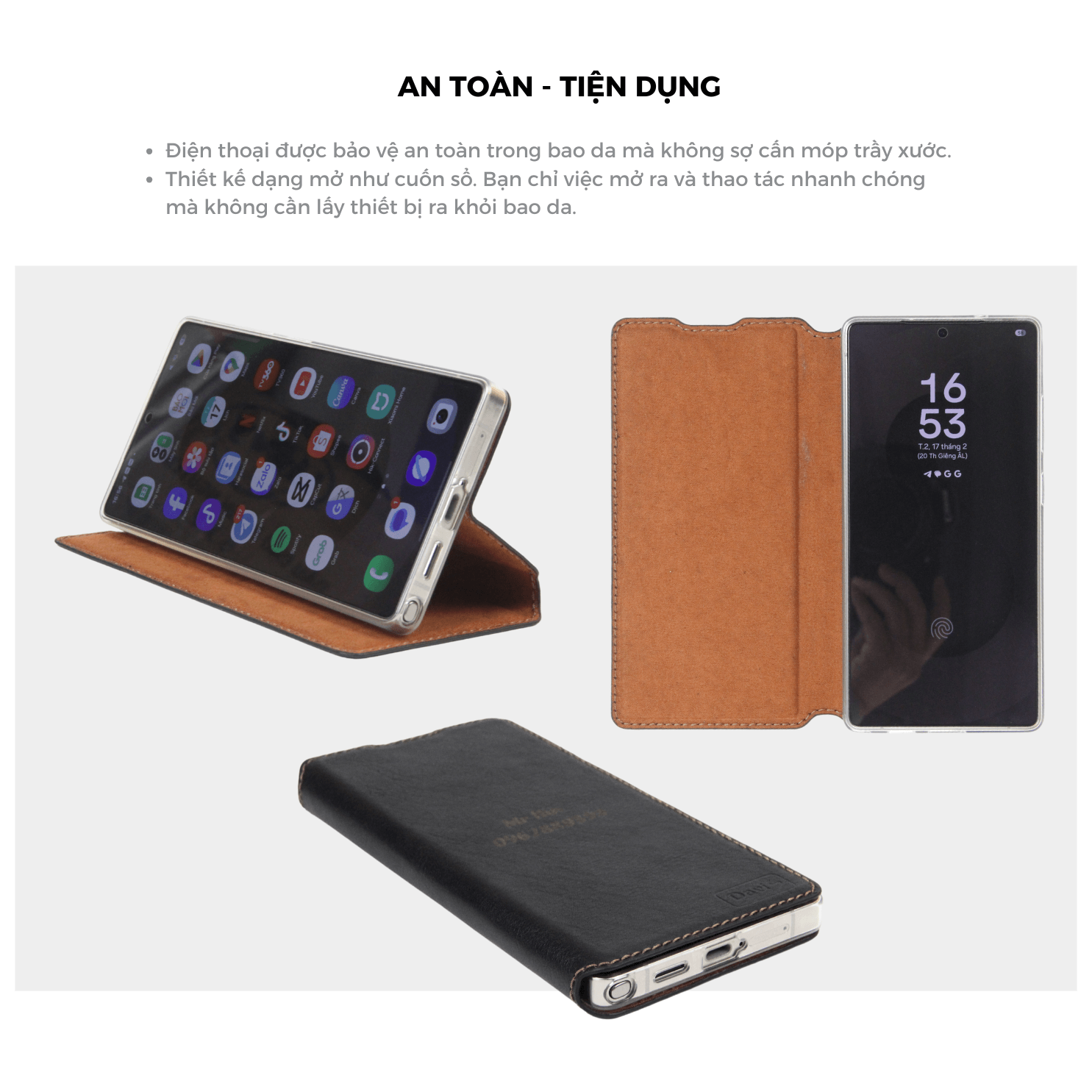 • Chất liệu da bò thật nhập khẩu cao cấp. Khâu thủ công tỉ mỉ từng đường chỉ.