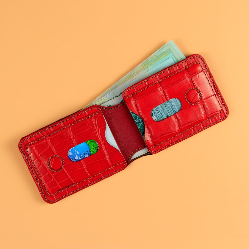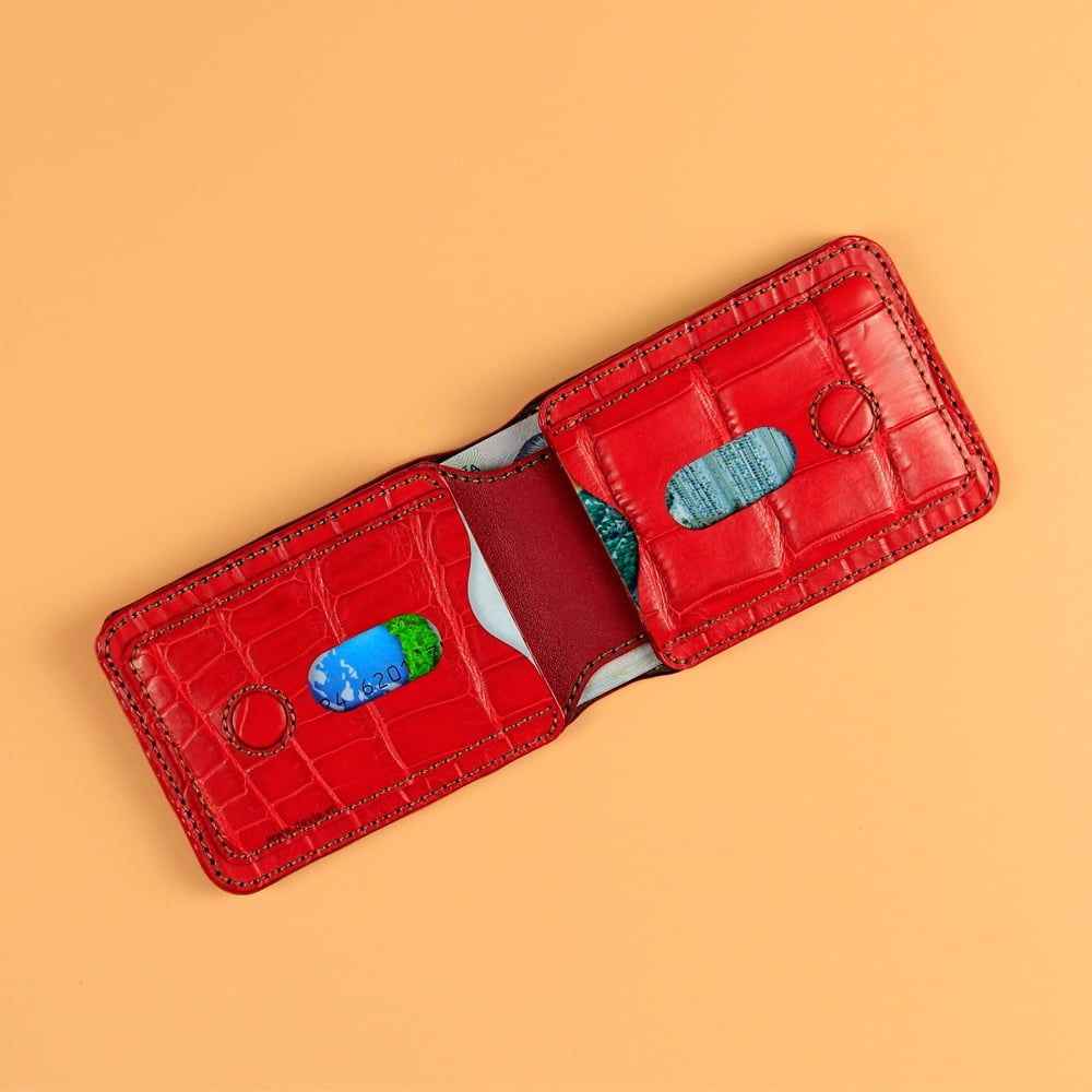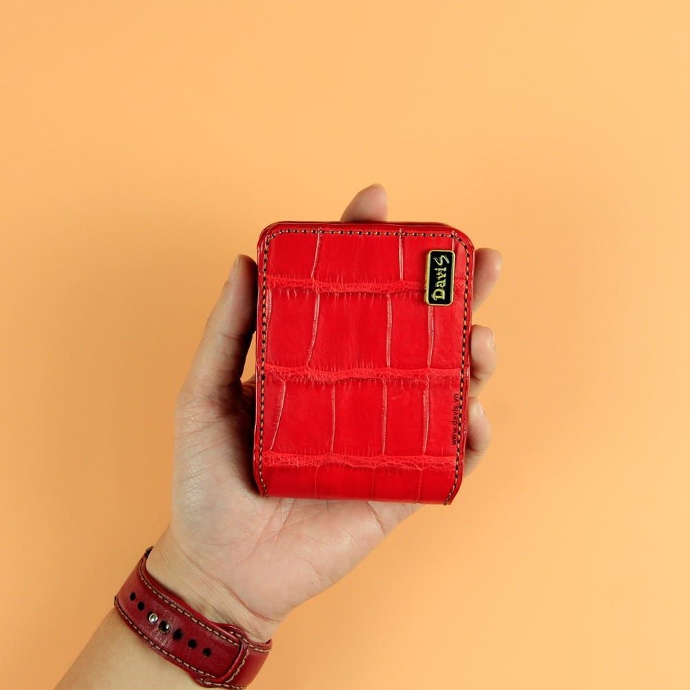 • Chất liệu da cá sấu. Khâu thủ công tỉ mỉ từng đường chỉ.